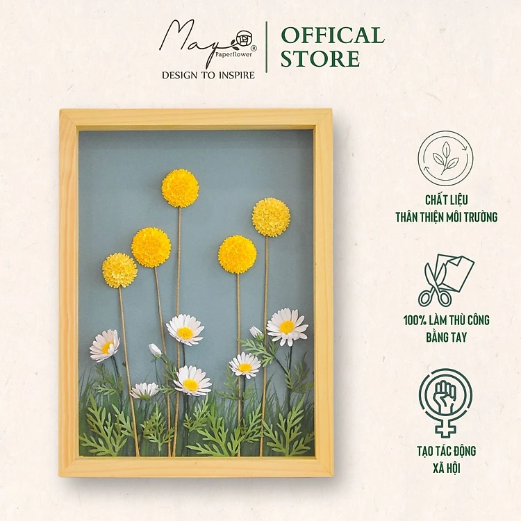 Tranh hoa giấy handmade trang trí cao cấp WILD Flower 30x40cm - Maypaperflower Hoa giấy nghệ thuật