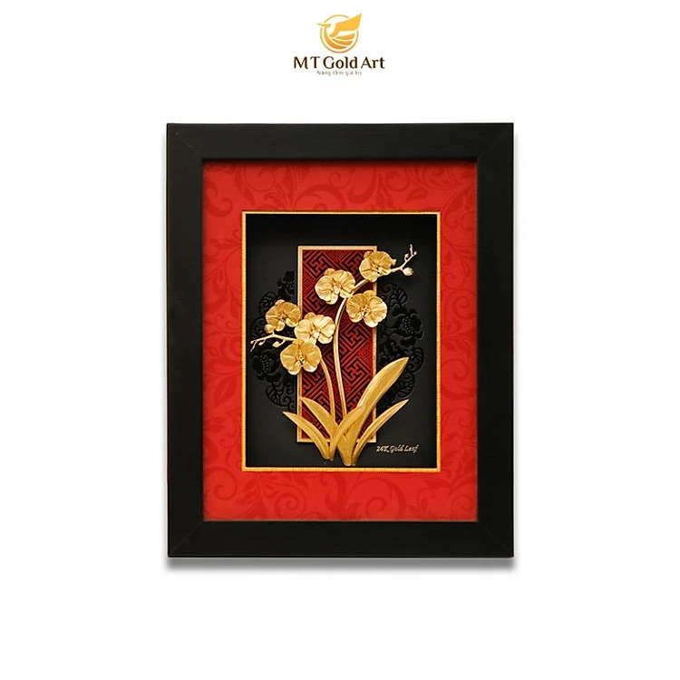 Tranh hoa lan dát vàng (27x34cm) MT Gold Art- Hàng chính hãng, trang trí nhà cửa, phòng làm việc, quà tặng sếp, đối tác, khách hàng, tân gia, khai trương