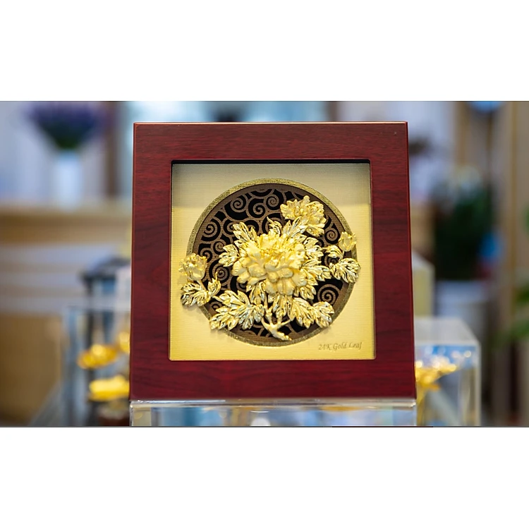 Tranh hoa mẫu đơn dát vàng (20x20cm) MT Gold Art- Hàng chính hãng, trang trí nhà cửa, phòng làm việc, quà tặng sếp, đối tác, khách hàng, tân gia, khai trương