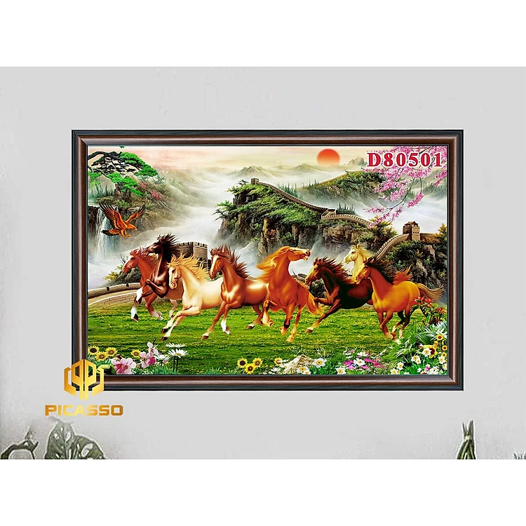Tranh kính Bát mã tung hoành D602 44 (Được chọn mẫu)