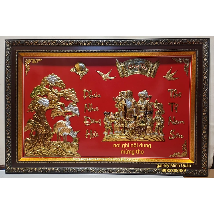Tranh mừng thọ Ông, Bà bằng đồng vàng nguyên chất