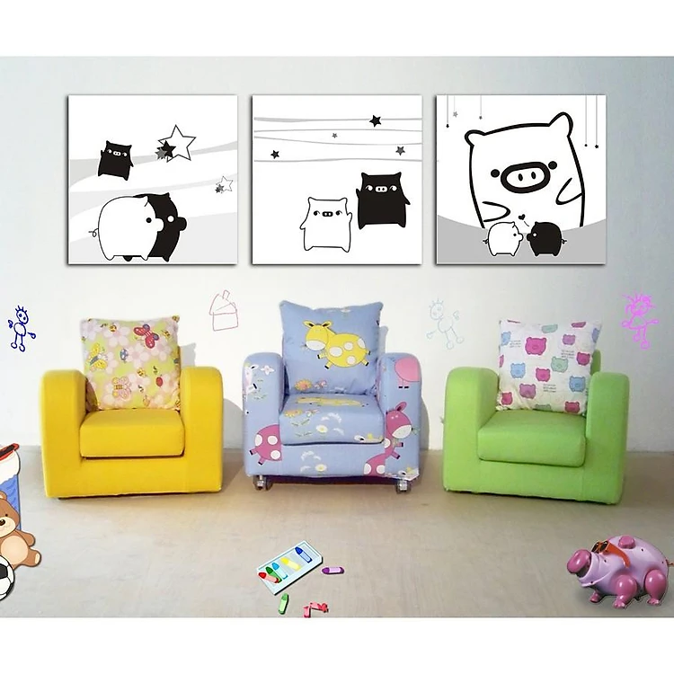 Tranh Nghệ Thuật - Tranh Canvas Treo Tường Trắng Đen Heo Boo