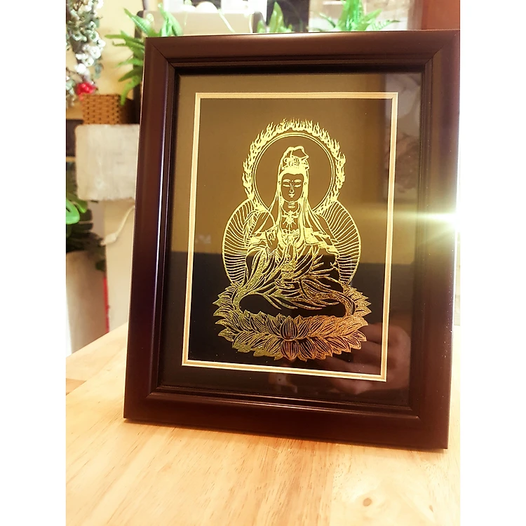 Tranh Phật Quan Âm ( KT 25x20x4cm)- Tranh Net Vàng để bàn