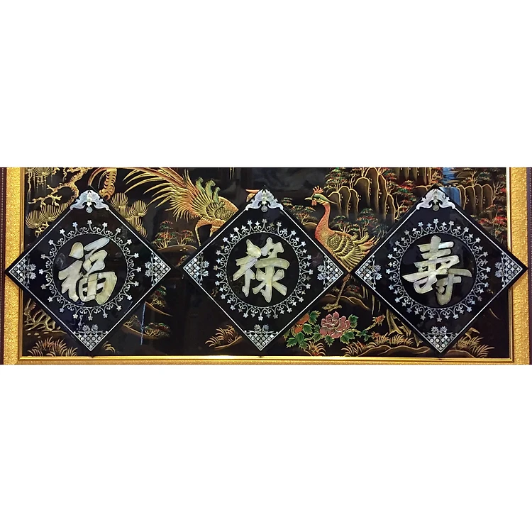 Tranh sơn mài khảm ốc, bộ 3 tấm Phúc Lộc Thọ - SM222