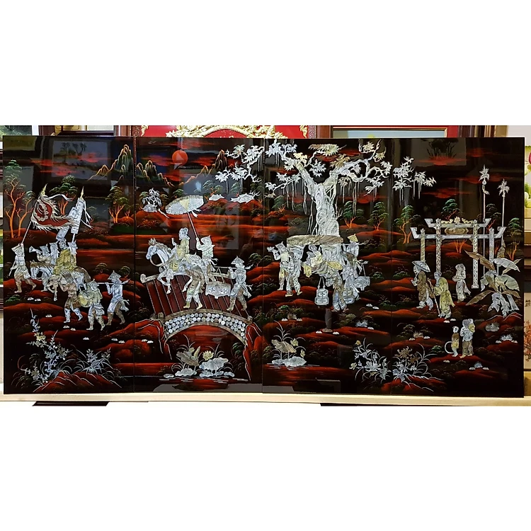 TRANH SƠN MÀI KHẢM TRAI, CẨN ỐC - VINH QUY BÁI TỔ