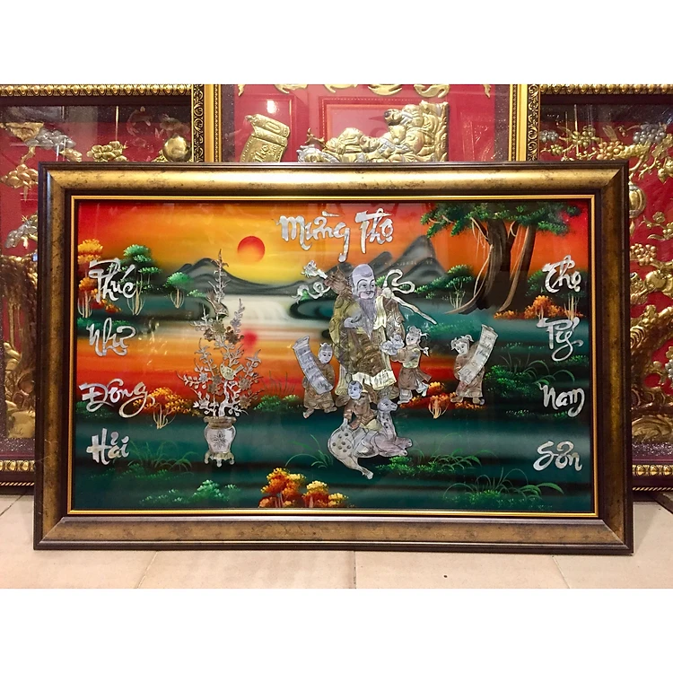 Tranh sơn mài khảm trai chúc thọ Ông Bà