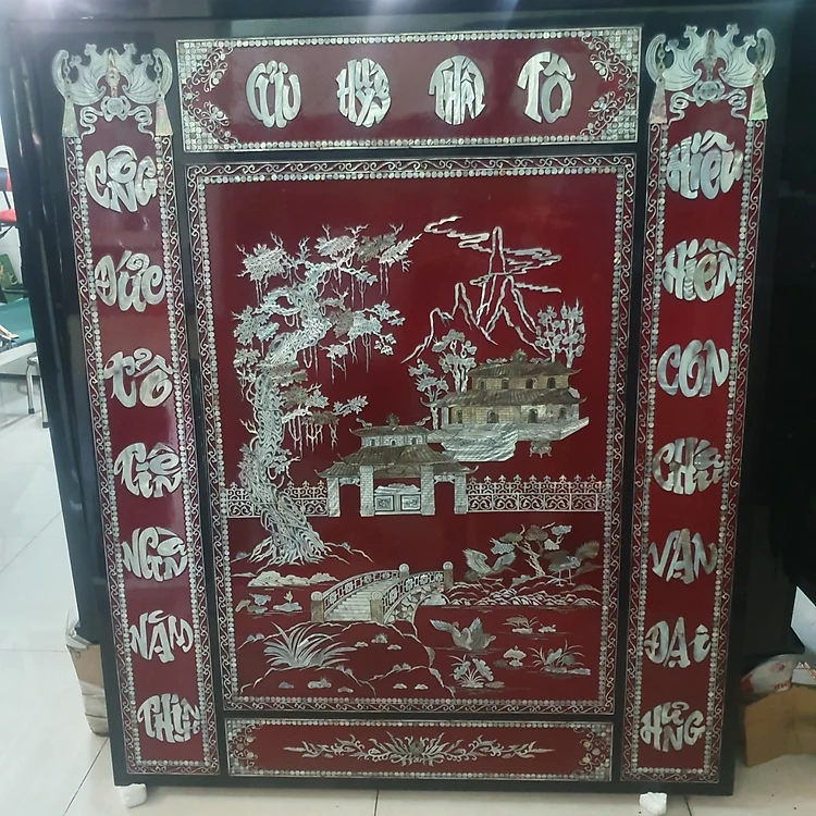 Tranh sơn mài liễn thờ cửu huyền thất tổ cẩn ốc cao cấp Thanh Bình Lê 120x143 cm