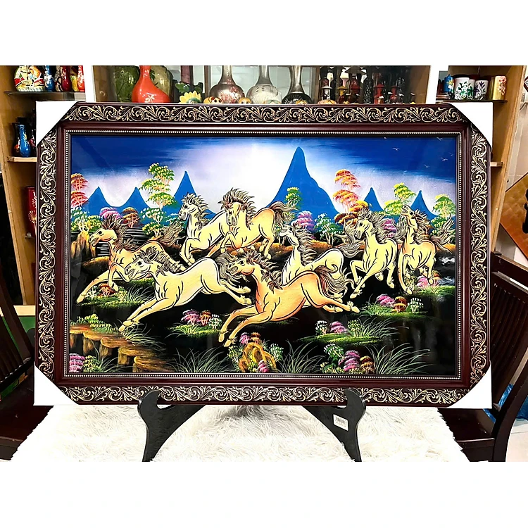 Tranh sơn mài MÃ ĐÁO THÀNH CÔNG đắp nổi mới hàng xuất khẩu 50x80 cm