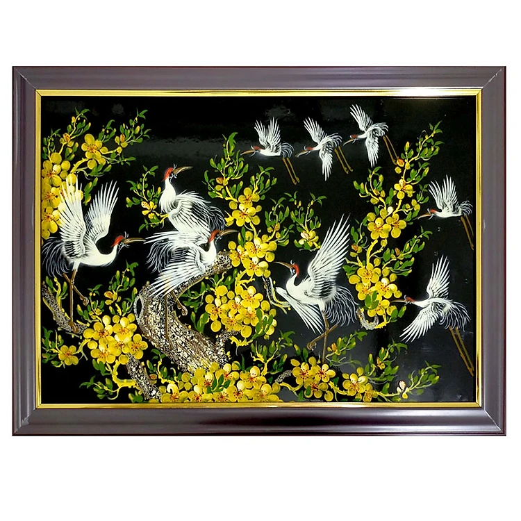 Tranh sơn mài tranh phong thủy mai hạc quy viên SM00005 60x40cm