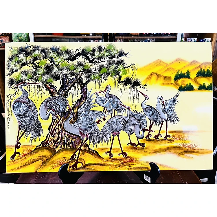 Tranh sơn mài - TÙNG HẠC DIÊN NIÊN - Đắp nổi size 50x80 cm - Ý Nghĩa Phong Thủy