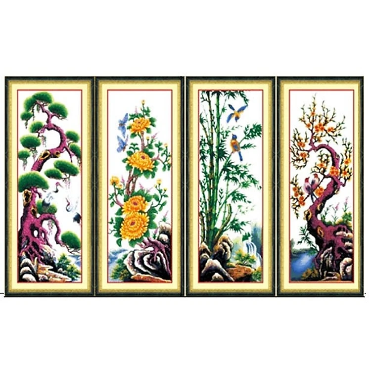 Tranh thêu chữ thập 4 bức rời Bộ Tứ Quý Tùng Cúc Trúc Mai (40*100cm*4) chưa thêu