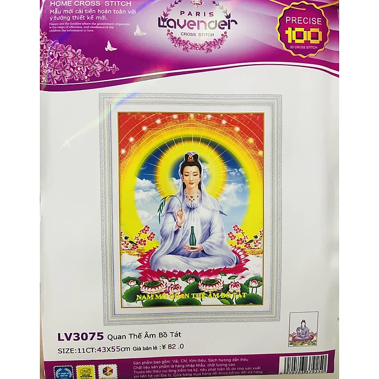 Tranh thêu chữ thập Phật quan âm LV3075, kích thước 43 x 55 cm