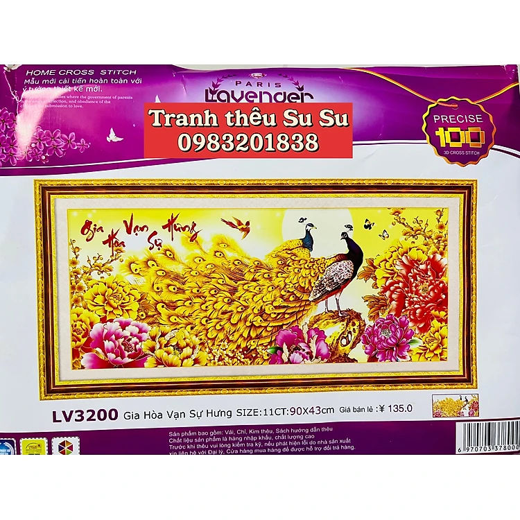 Tranh thêu chữ thập Gia hòa vạn sự hưng LV3200, kích thước 90 x 43 cm