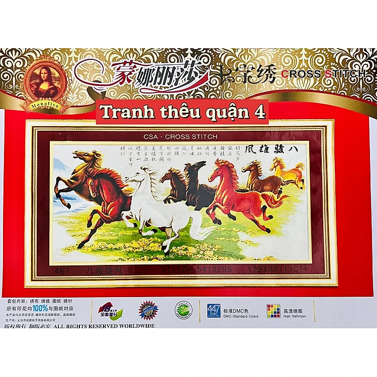 Tranh thêu chữ thập Mã đáo thành công (ngựa thảo nguyên) 467, kích thước 139 x 83 cm