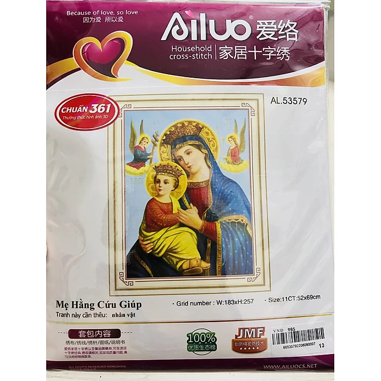 Tranh thêu chữ thập Mẹ hằng cứu giúp 53379 kích thước 52 x 69 cm