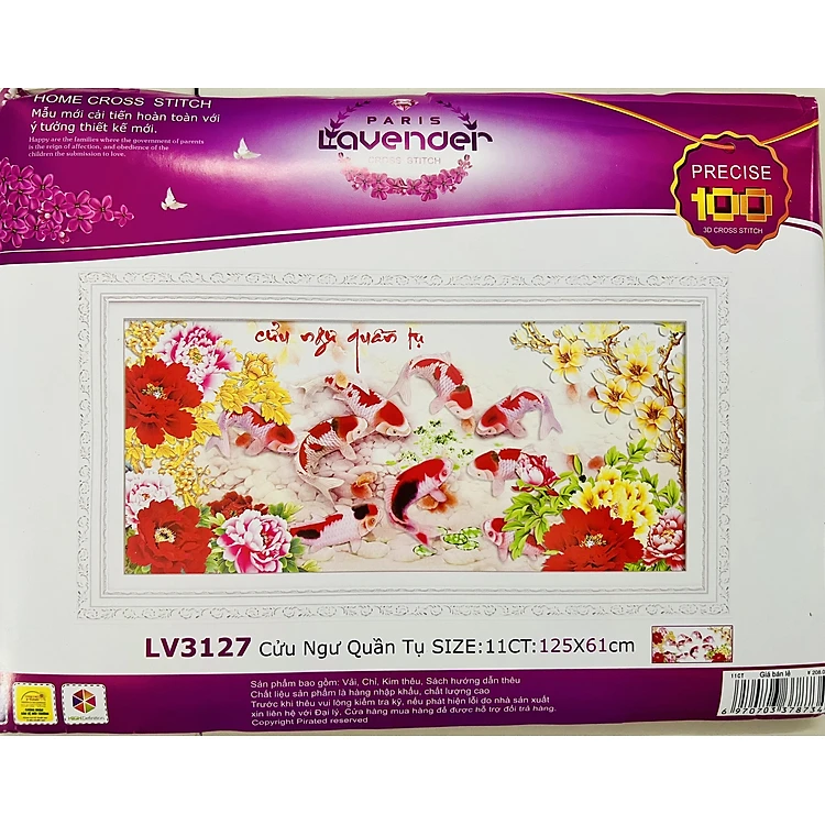 Tranh thêu chữ thập Cửu ngư quần hội LV3172, kích thước 125 x 60 cm