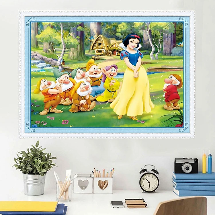 Tranh thêu kín Bạch tuyết và 7 chú lùn, kích thước 90 x 66 cm