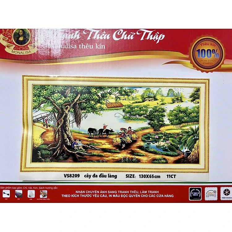 Tranh thêu kín Cây đa đầu làng vs8209, kích thước 130 x 65 cm