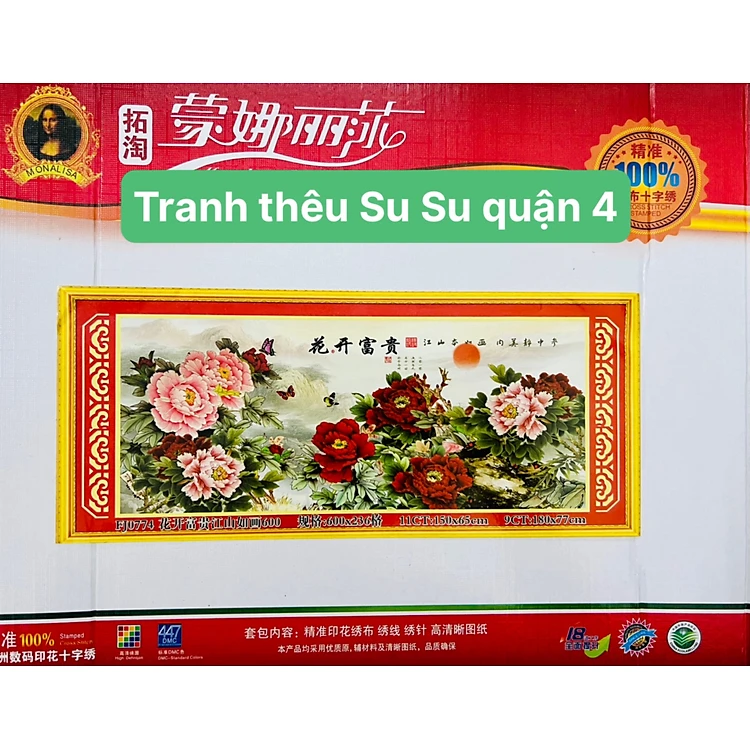Tranh thêu kín chữ thập Hoa mẫu đơn FJ0774, kích thước 150 x 65 cm