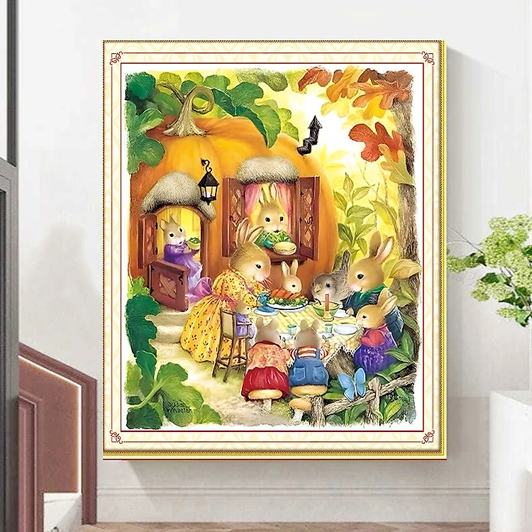 Tranh thêu kín Gia đình Thỏ DX1335, kích thước 67 x 60 cm