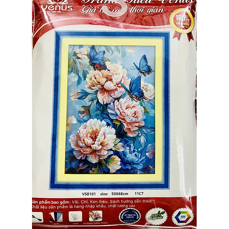 Tranh thêu kín Hoa mẫu đơn vs8101, kích thước 50 x 68 cm