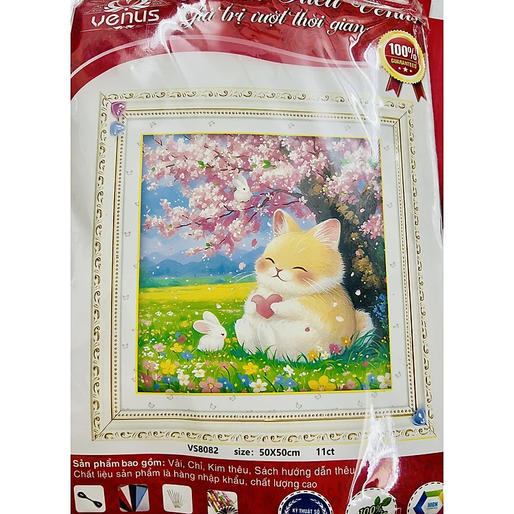 Tranh thêu kín Mèo con dễ thương vs8082, kích thước 50 x 50 cm
