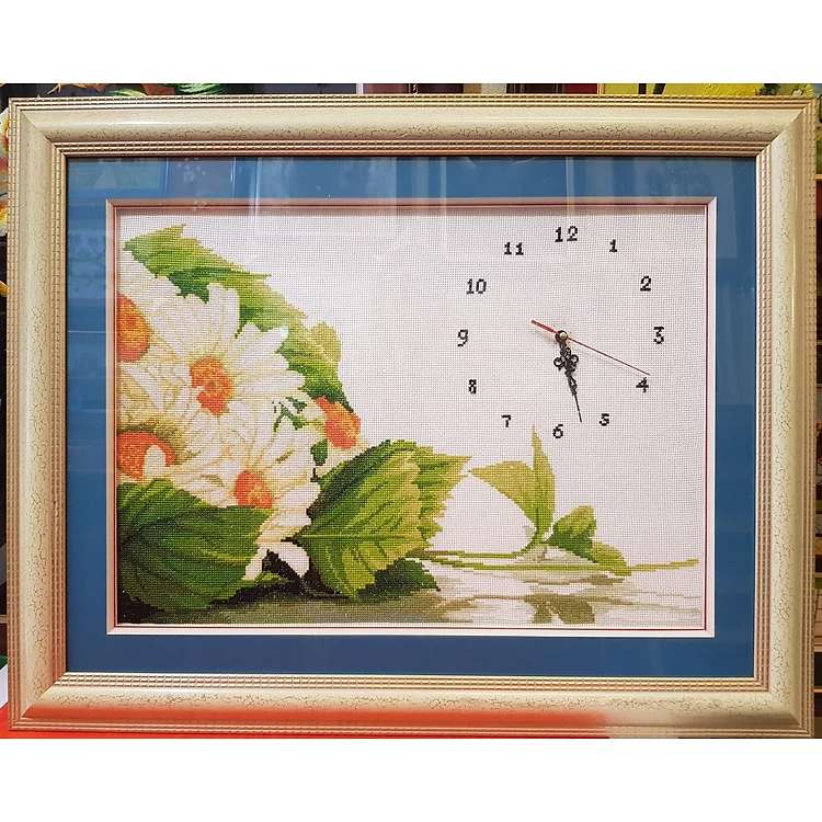 Tranh thêu tay chư thập-Hoa dướng dương-Hoa mặt trời gắn đồng hồ-ct62
