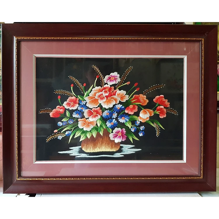 TRANH THÊU TAY -HOA LAN -HOA CÚC -HOA HỒNG