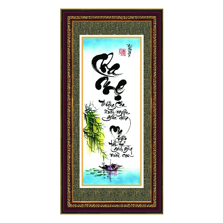 Tranh thư pháp chữ Cha mẹ ý nghĩa TPT-30x60-16