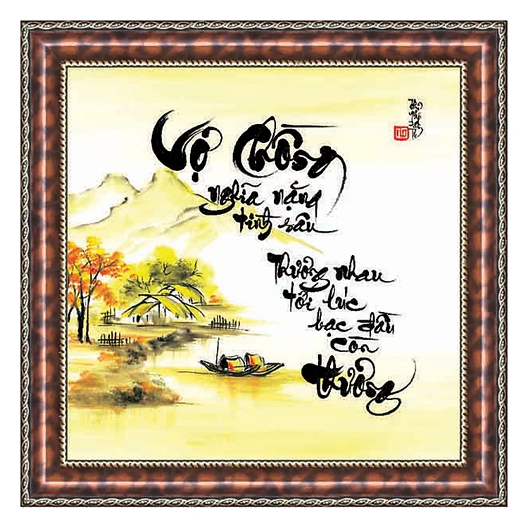 - Sản phẩm được vẽ bằng tay hoàn hảo từng tác phẩm, chữ được thể hiện theo phong cách thư pháp cổ điển, từng đường nét nhấn nhá có lực và rõ ràng kết hợp hình ảnh tinh tế thể hiện nét đẹp thẩm mỹ cho toàn bộ bức tranh.