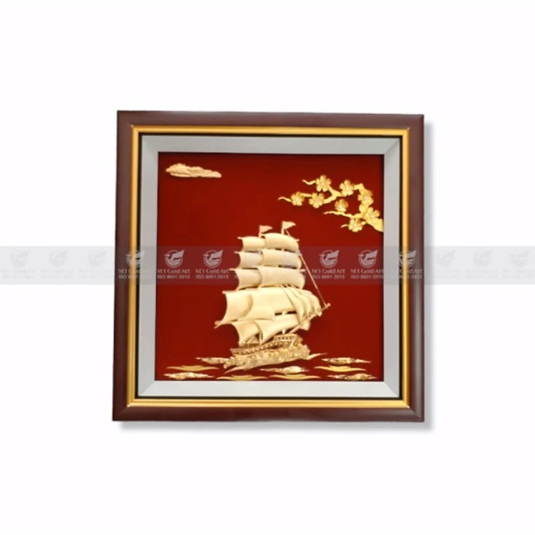 Tranh thuyền buồm hoa mai dát vàng 30x30cm MT Gold Art- Hàng chính hãng, trang trí nhà cửa, phòng làm việc, quà tặng sếp, đối tác, khách hàng, tân gia, khai trương