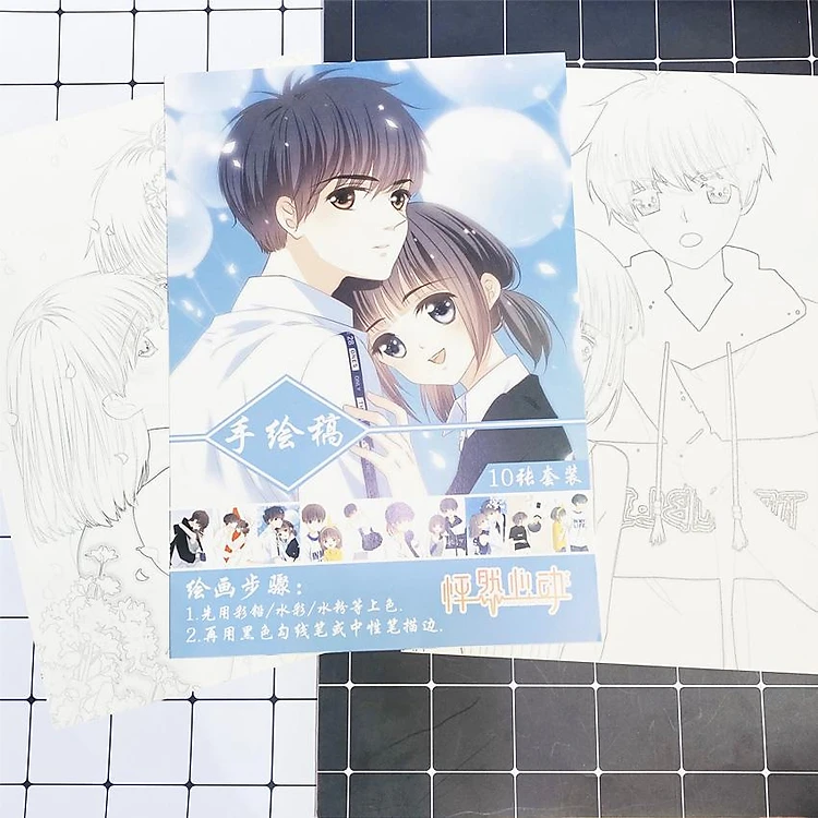 Tranh tô màu Con tim rung động tập bản thảo phác họa anime manga chibi tặng thẻ Vcone