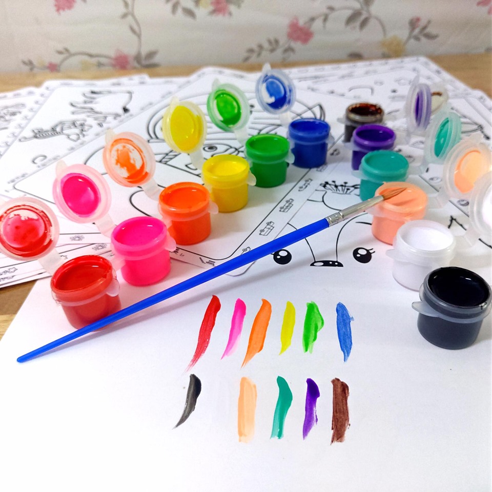 Tranh tô màu nước 12 màu 12 tranh cỡ 20cmx15cm