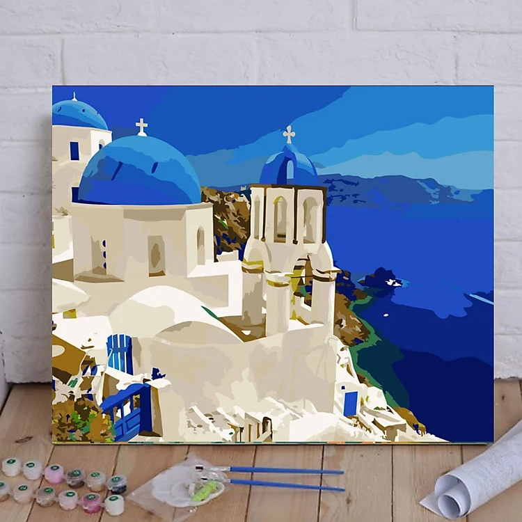 Tranh Tô Màu Theo Số, Sơn Dầu Số Hóa Đảo Santorini - Ai Cập