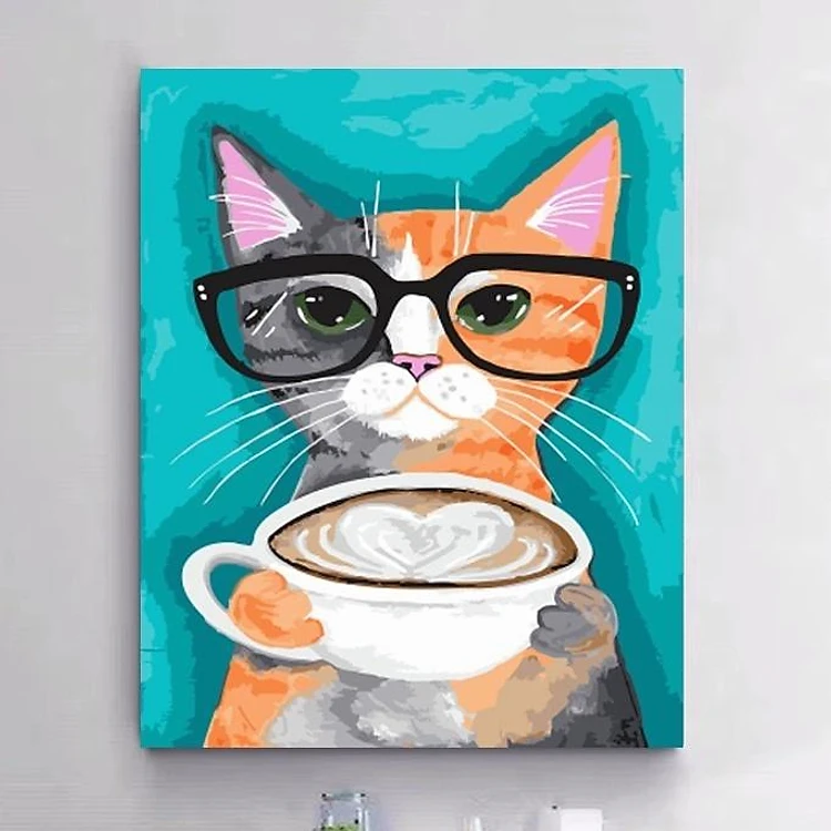 Tranh tô màu theo số Sondausohoavn chú mèo và tách cafe DV4338