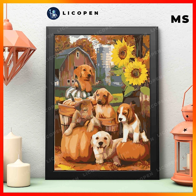 Tranh Tô Màu Theo Số - Tranh Chó Con - MS484