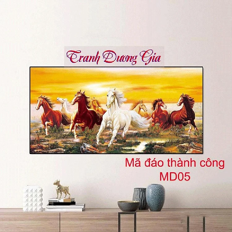 Tranh tráng gương, tranh treo phòng khách mã đáo thành công, sang- bền-đẹp