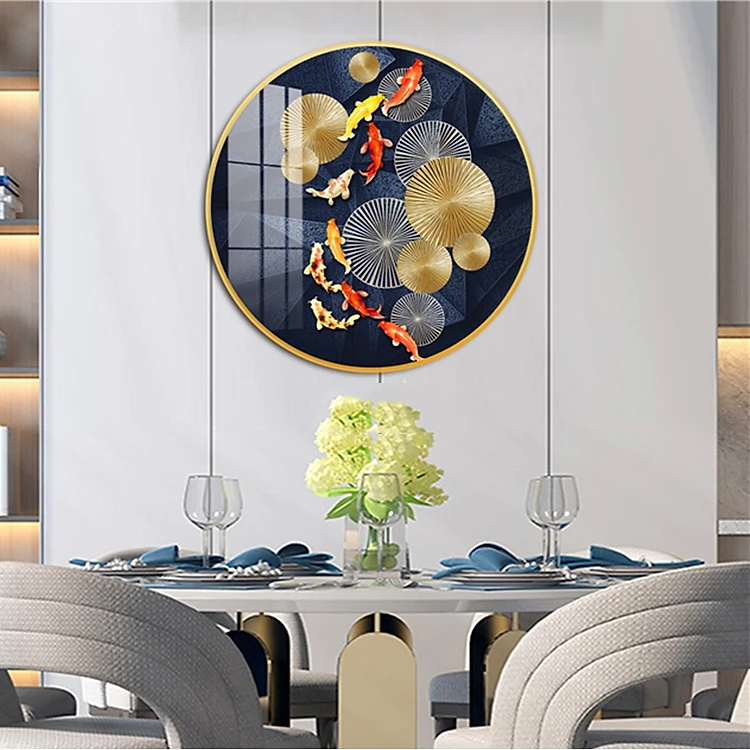 Tranh Treo Tường 3D - Tranh Tròn Tráng Gương Cá Chép Nghệ Thuật