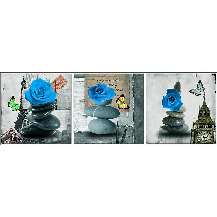 Tranh treo tường bộ 3 tấm Hoa Hồng Xanh - không khung viền