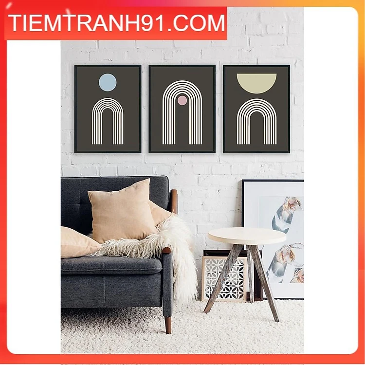 Tranh treo tường | Bộ 3 tranh White Arches Wall Art / Gray White Print Set / Pastel Colors Poster