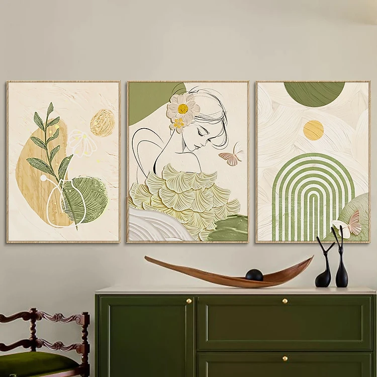 Tranh treo tường cô gái nghệ thuật tranh hiện đại bộ 3 tấm có sẵn khung kèm đinh