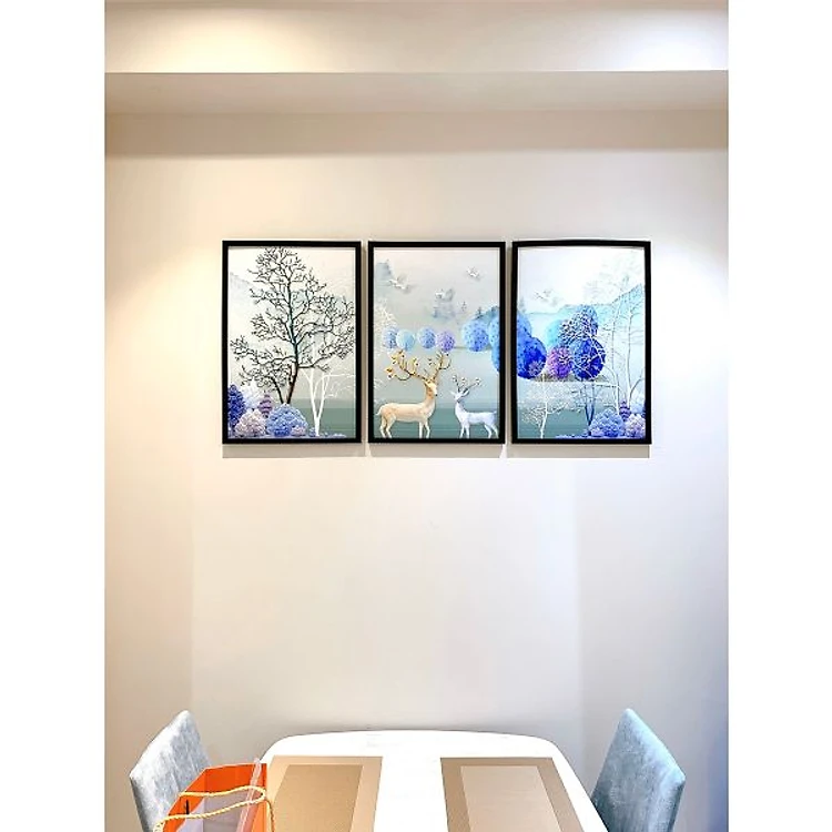 Tranh treo tường ép kim sa hươu vàng - tranh treo phòng khách - phòng ngủ- khách sạn,viền khung composite - tặng kèm sét đinh 3 chân KT02