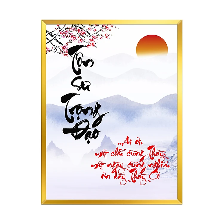 Tranh Treo Tường - Mẫu tranh in chữ Thư Pháp - Tôn Sư Trọng Đạo - TTSTD03 - Kích thước 30x40cm - Hàng Chính Hãng