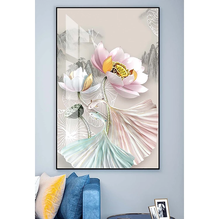 Tranh treo tường phòng khách - khách sạn - nhà hàng bóng kiếng pha le hoa sen hồng THD98
