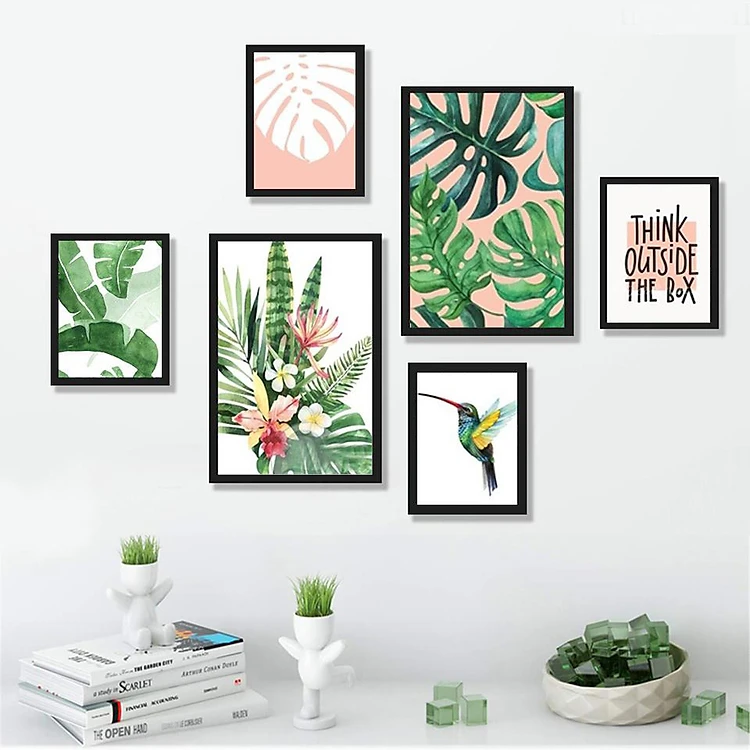 Bộ combo gồm 6 bức tranh treo tường theo chủ đề Tropical - Nhiệt đới với gam màu xanh lá hiện đại.