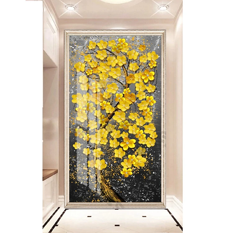 Tranh treo tường phòng khách-Tranh 1 tấm Hoa mai Vàng M25822/ Gỗ MDF cao cấp / Chống ẩm mốc, mối mọt/Bo viền góc tròn