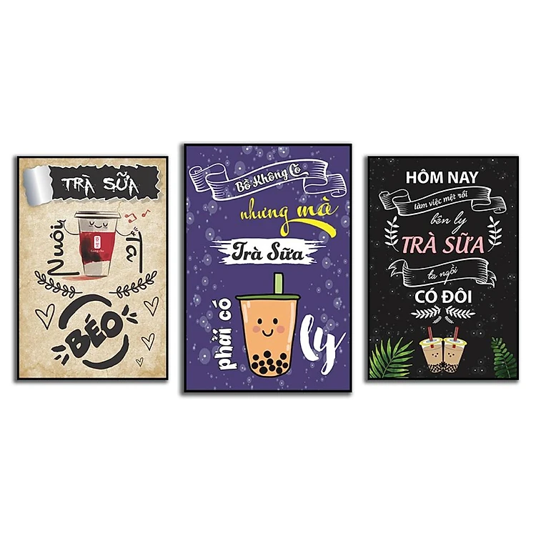 • Tranh trà sữa với thiết kế ngộ nghĩnh, hiện đại, dễ thương, những câu nói bá đạo, hài hước đang trở thành dòng tranh được ưa chuộng trong không gian trà sữa hiện đại.