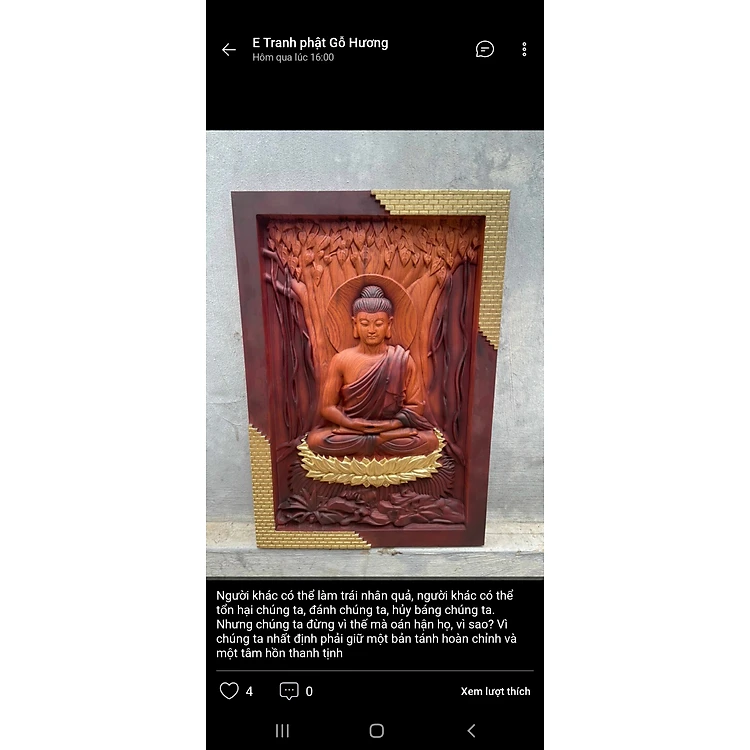 Tranh treo tường trạm khắc tượng phật ,bằng gỗ hương đá tô làm mầu giả cổ kt 46×67×4,5cm