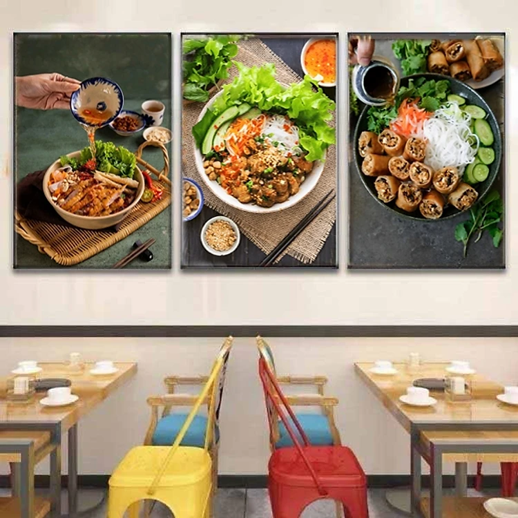 Tranh treo tường tráng gương bún thịt nướng,bún nem nướng, bún chà giò trang trí quán ăn,nhà hàng(kèm đinh treo)