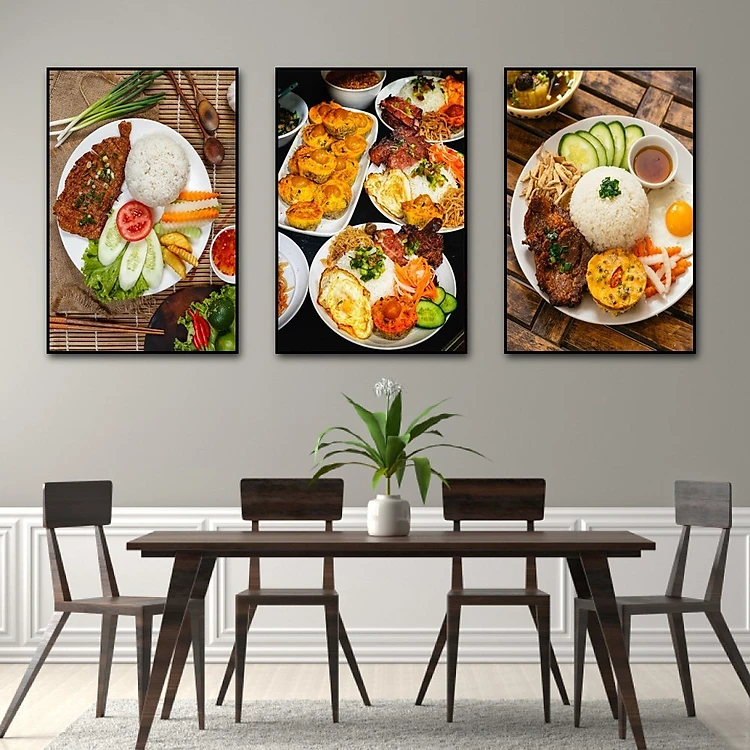 Tranh treo tường tráng gương cơm tấm 2 trang trí quán ăn,nhà hàng(kèm đinh treo)